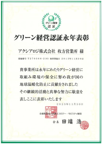 「グリーン経営認証永年登録表彰」を頂きました✨